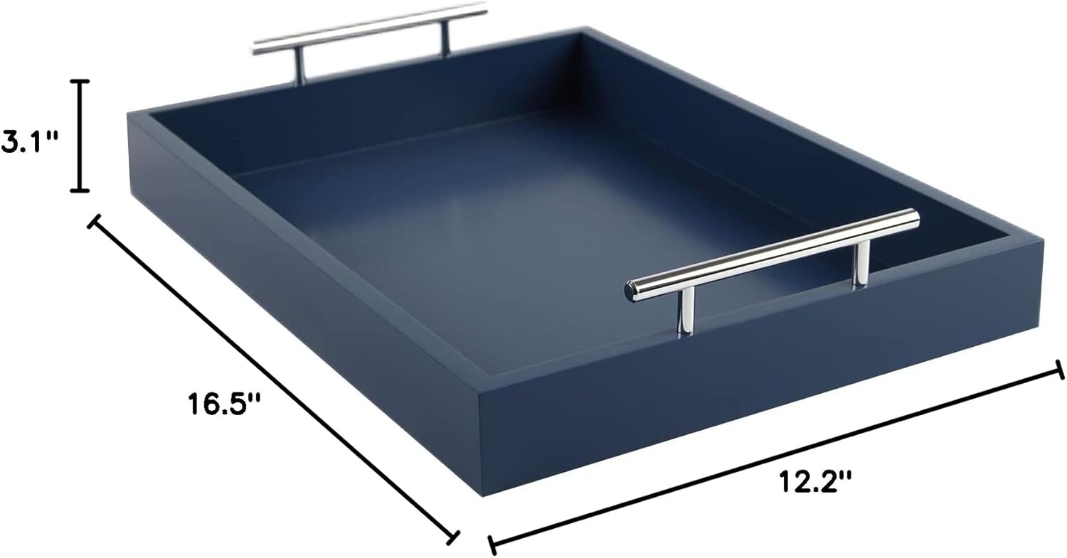 Measuring 16″ x 12″, this tray is spacious enough to hold all your essentials while still being lightweight and easy to carry with its sturdy handles. The gorgeous blue finish adds a pop of color to any room and is versatile enough to use for all occasions, whether it’s a casual brunch with friends or a formal dinner party.