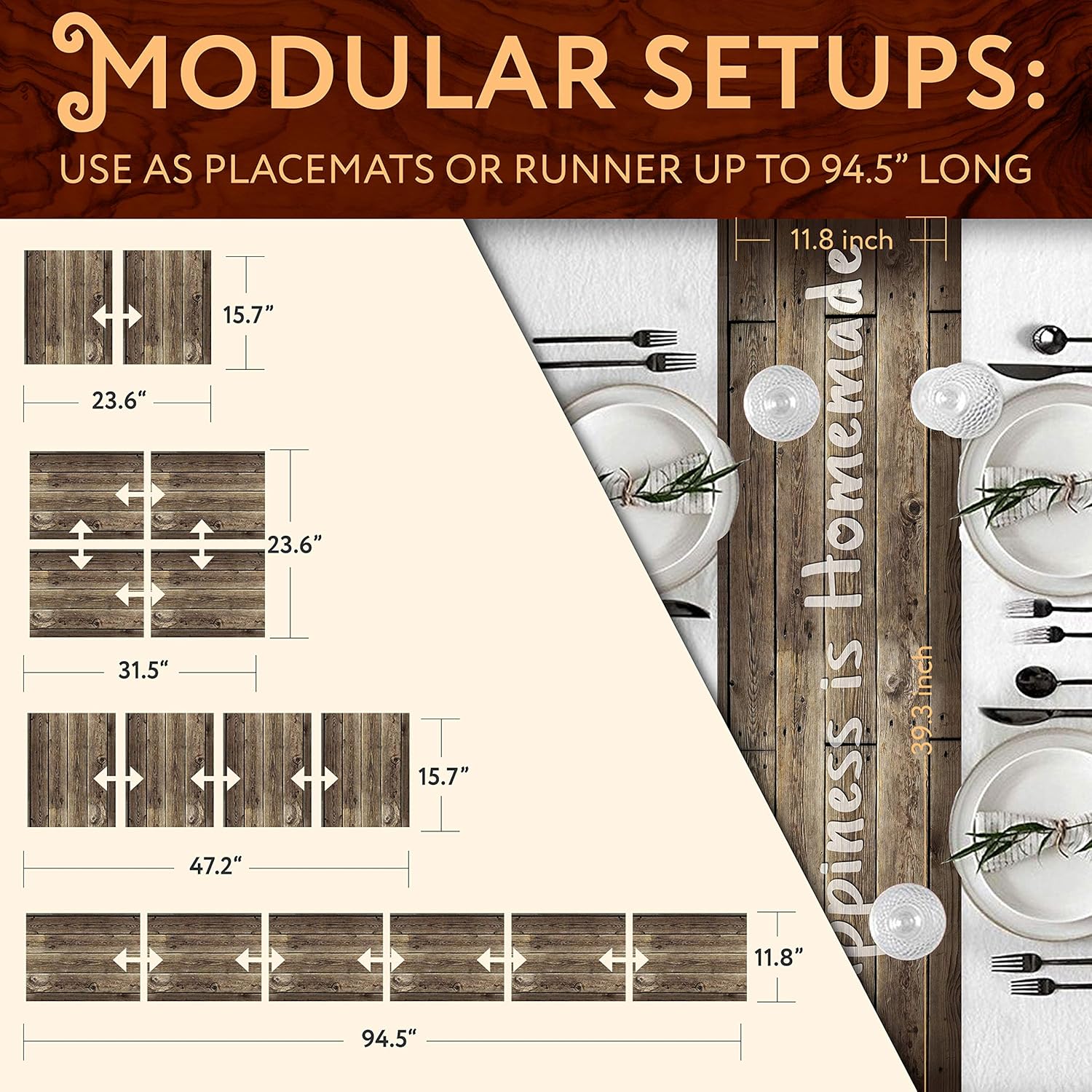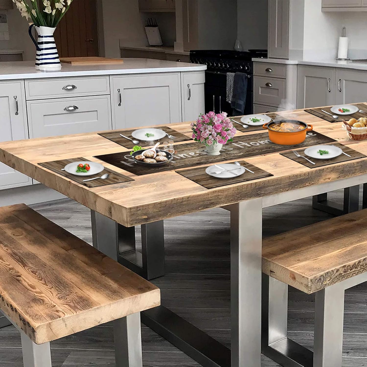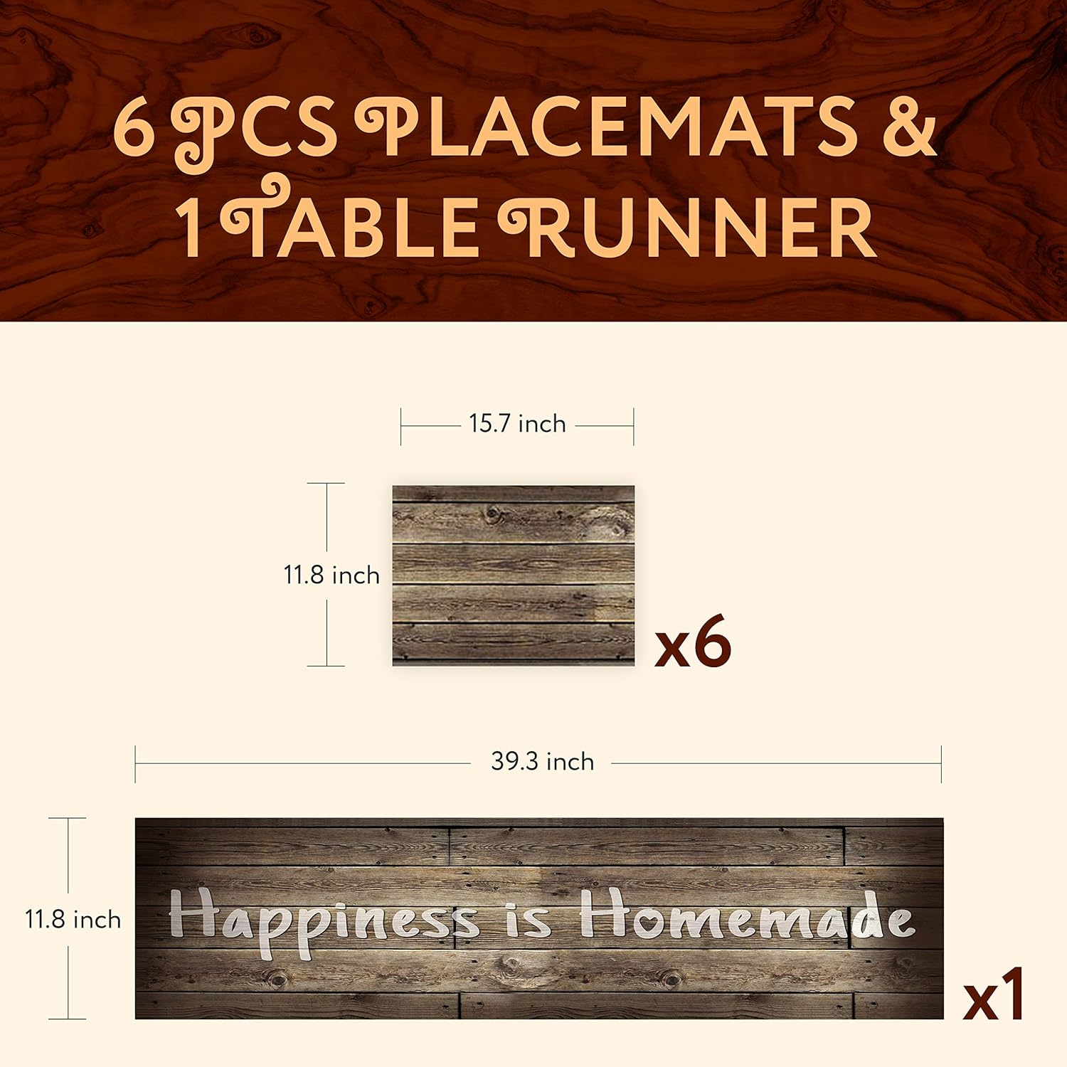 Crafted with a heat-resistant surface, the Trivetrunner is designed to withstand hot plates, pots, and dishes, keeping your surfaces safe from heat damage. The wooden rustic set includes a table runner and 6 matching placemats, adding a cozy and charming touch to your dining experience.